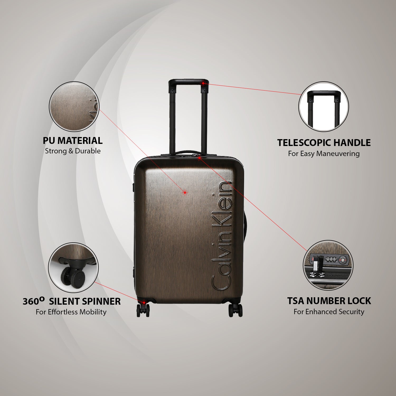 Number of Wheels 4,Secured TSA Lock ,Closure Zipper Warranty Description 3 Years international warranty,light weight trolley,one main compartment